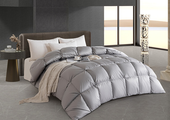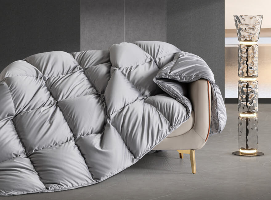 面包格加立衬设计,立体边双绳工艺,外加高达95%的充绒比例,让每个格子都饱满到这个程度,美观又有效地保留身体的热量,品质感拉满,满足您对羽绒被的需求。
