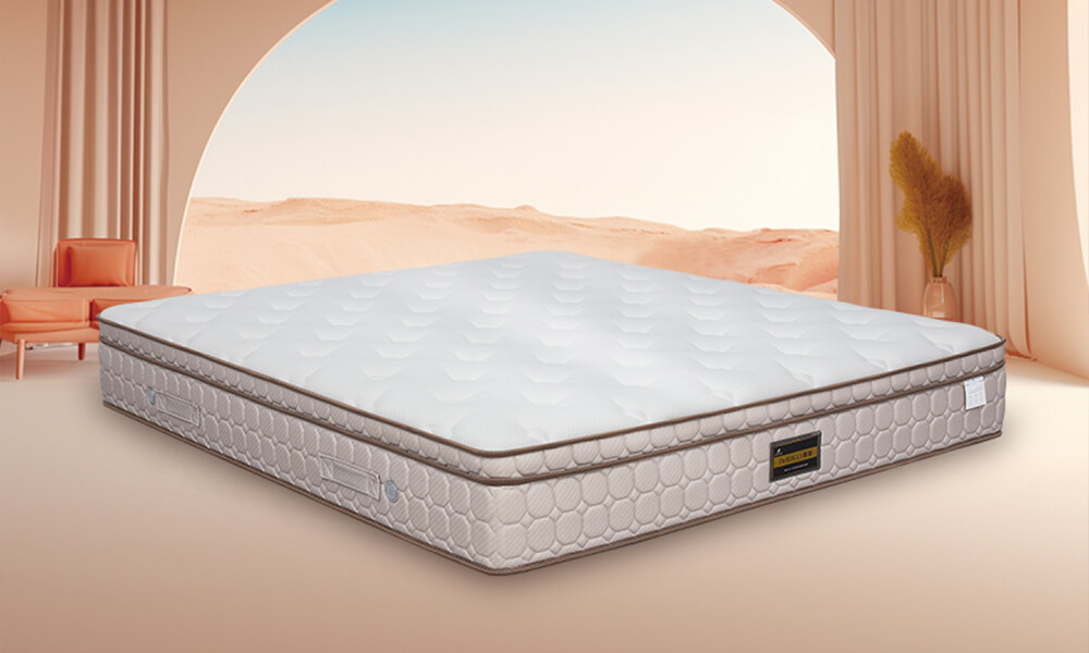 精选提花天丝面料,透气云朵棉及超柔高密度海绵的加入,让身体如卧云端;搭配抗干扰独袋弹簧,点对点精准支撑,舒柔入梦。