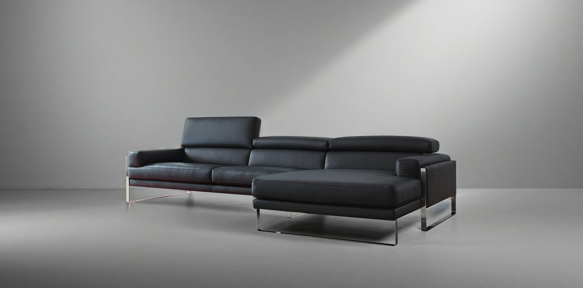 宽敞座椅和方形扶手为特色。其闪亮的钢制底座进一步加强了